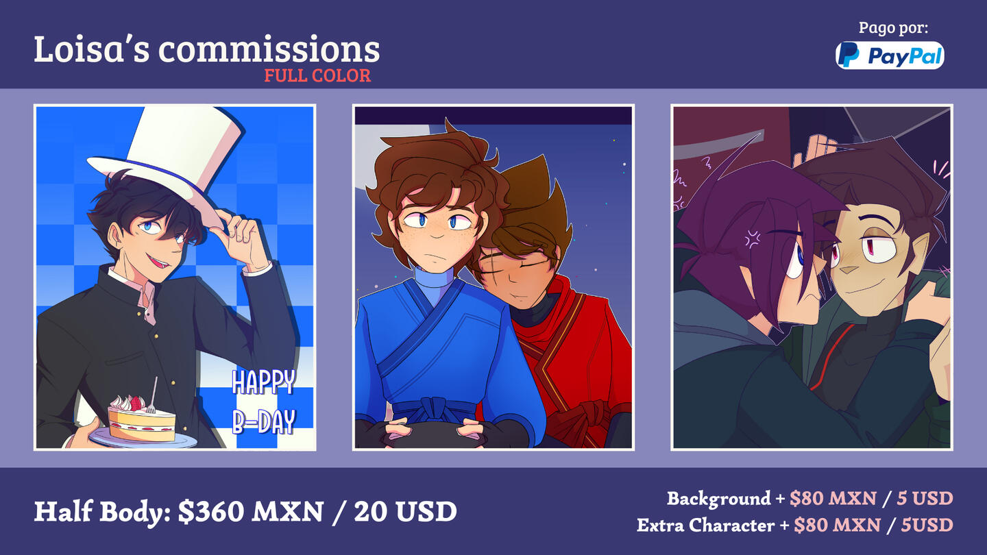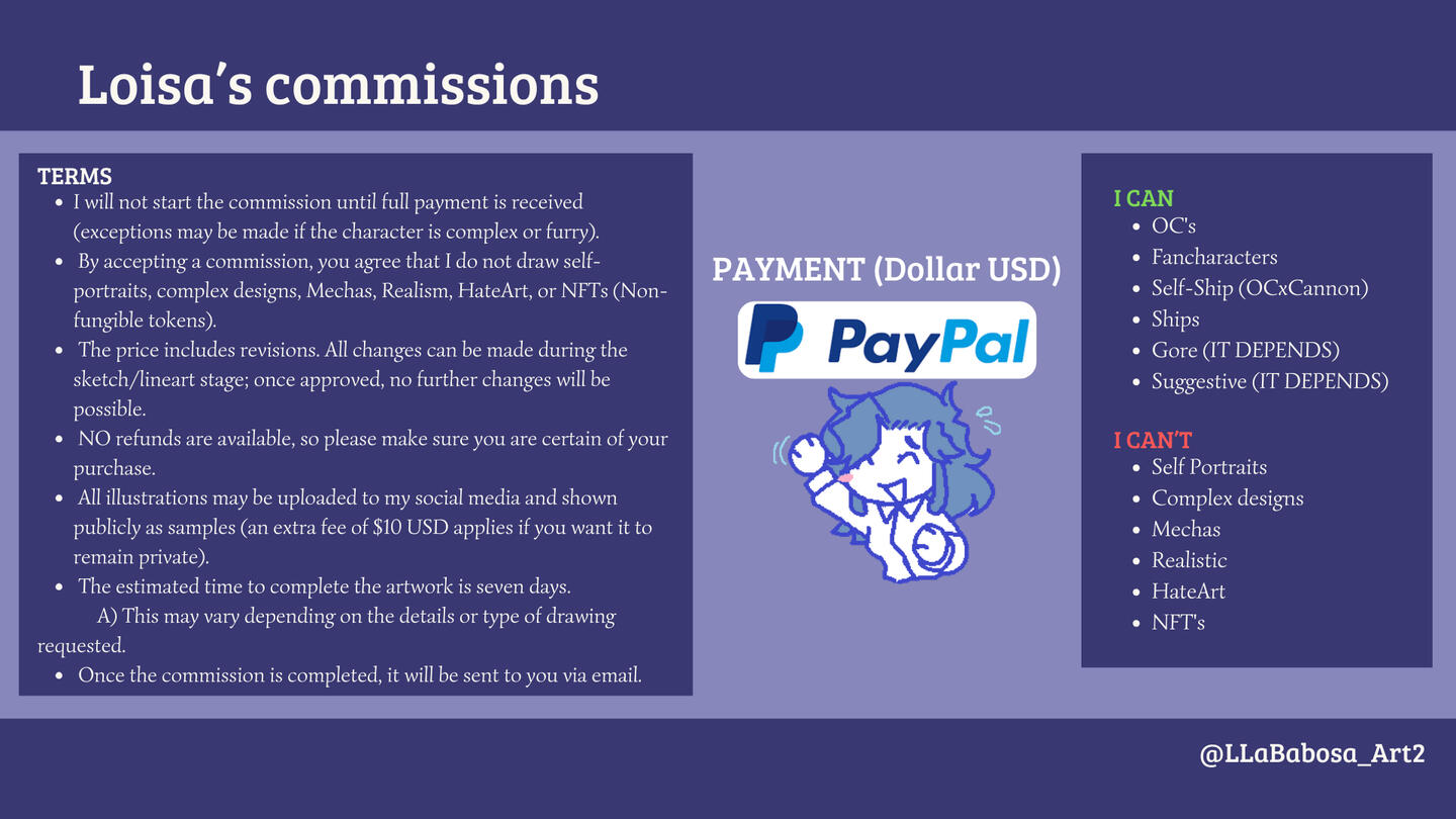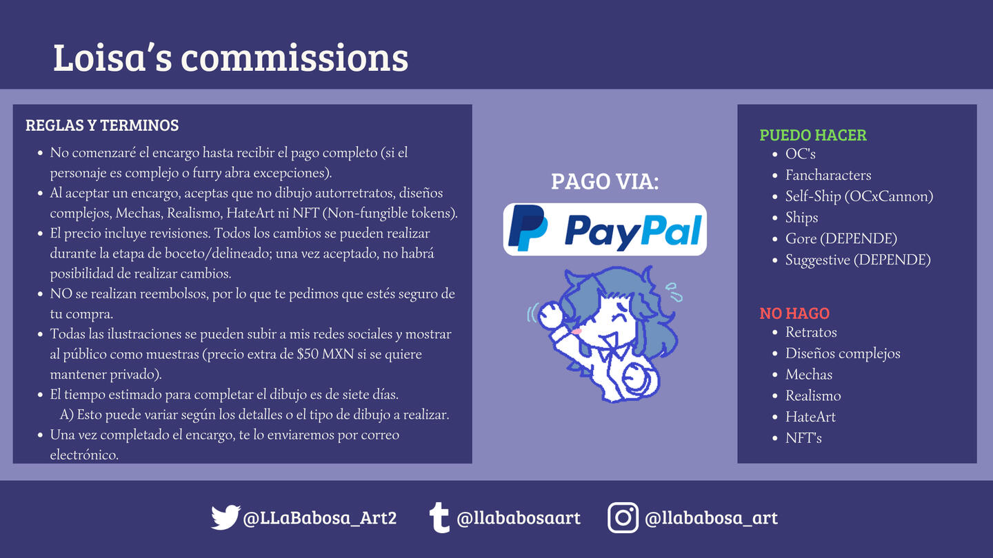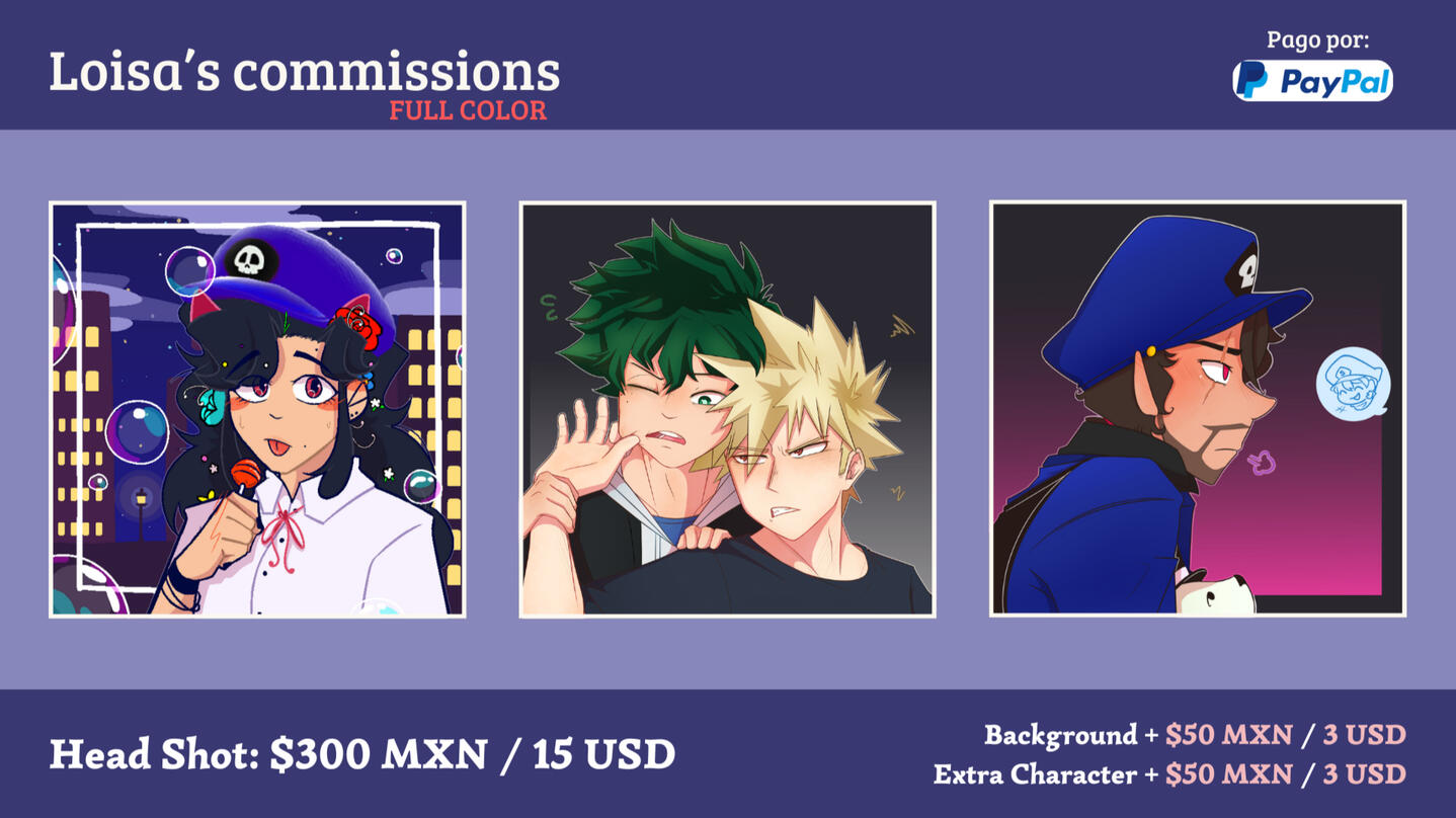 Holi, Soy Loisa! 🌺 Comisiones Abiertas Si la lista no contiene lo que buscas eres libre de preguntar por DM's
